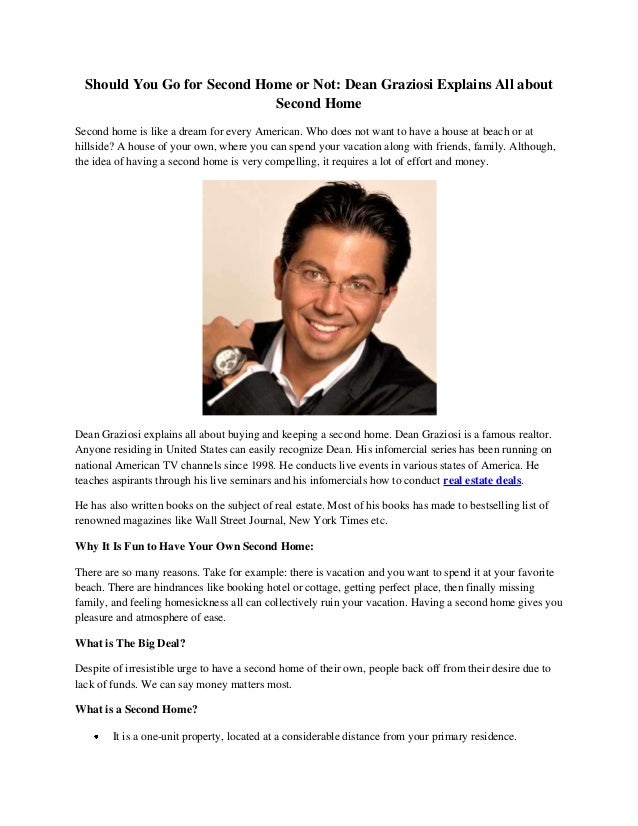 Should You Go For Second Home Or Not Dean Graziosi Explains All Abou