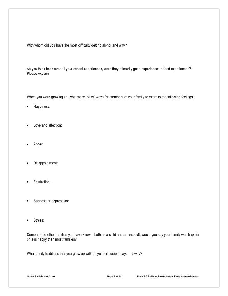 Home Study Questionnaire Single Female