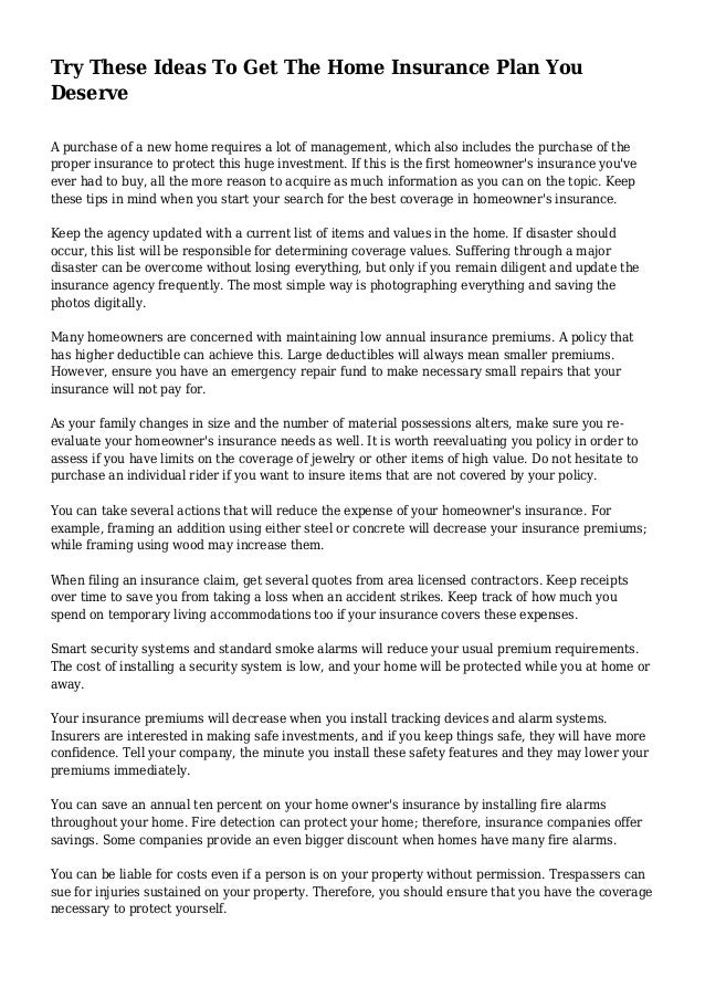 Try These Ideas To Get The Home Insurance Plan You Deserve